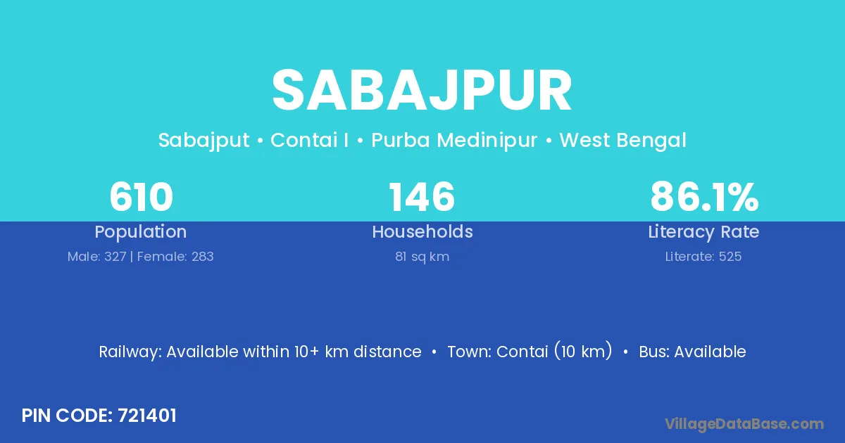 The literacy rate of Sabajpur village is 62.71%. Male literacy stands at 67.47% and female literacy at 57.76%.