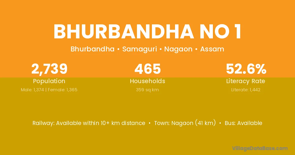 Bhurbandha No 1 village has a total population of 1,005 people, of which 526 are males and 479 are females.