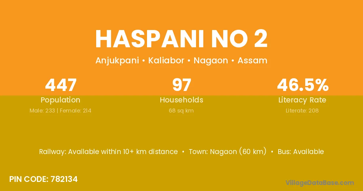 Haspani No 2 village has a total population of 447 people, of which 233 are males and 214 are females.