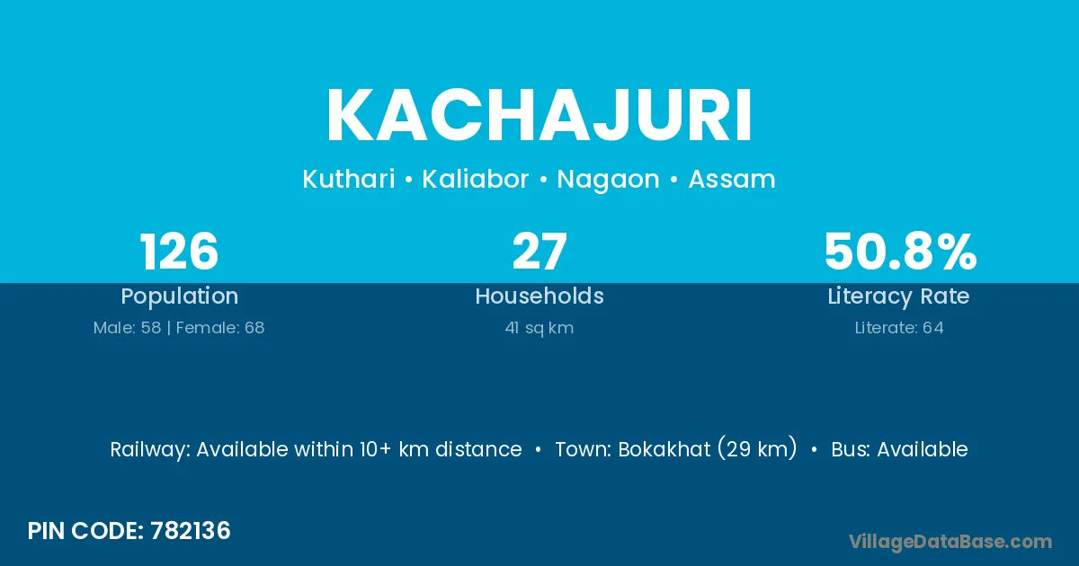 Bokakhat (29 km) is the nearest town to Kachajuri village for major economic activities and is located approximately 29 km away.