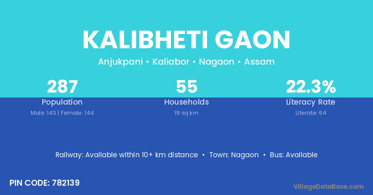 Kalibheti Gaon village has a total population of 287 people, of which 143 are males and 144 are females.