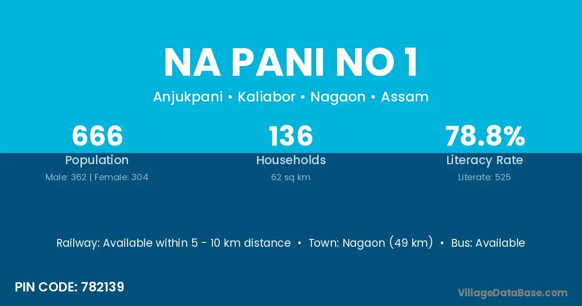 Nagaon (49 km) is the nearest town to Na Pani No 1 village for major economic activities and is located approximately 49 km away.