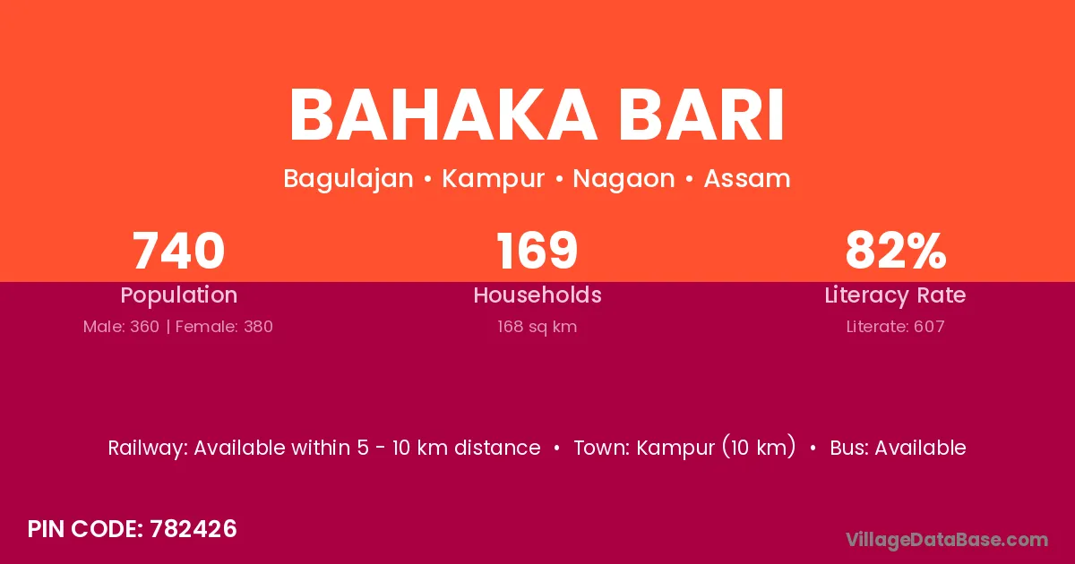 Kampur (10 km) is the nearest town to Bahaka Bari village for major economic activities and is located approximately 10 km away.