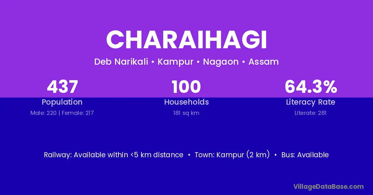 Kampur (2 km) is the nearest town to Charaihagi village for major economic activities and is located approximately 2 km away.