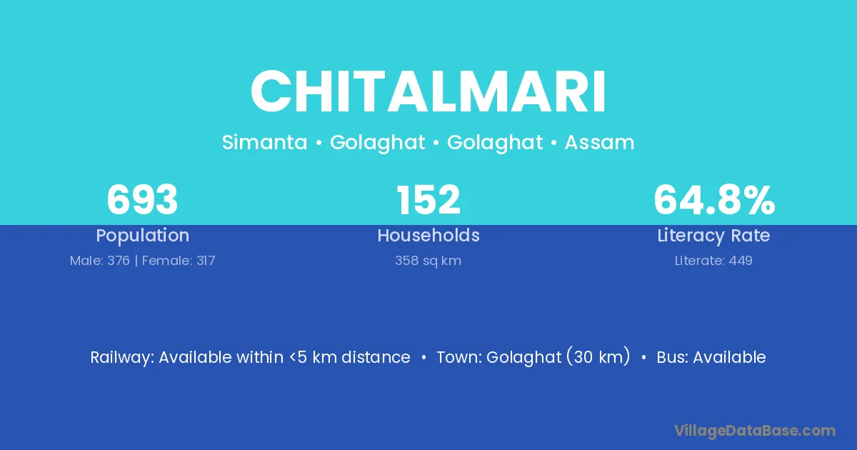 Chitalmari village has a total population of 1,628 people, of which 816 are males and 812 are females.