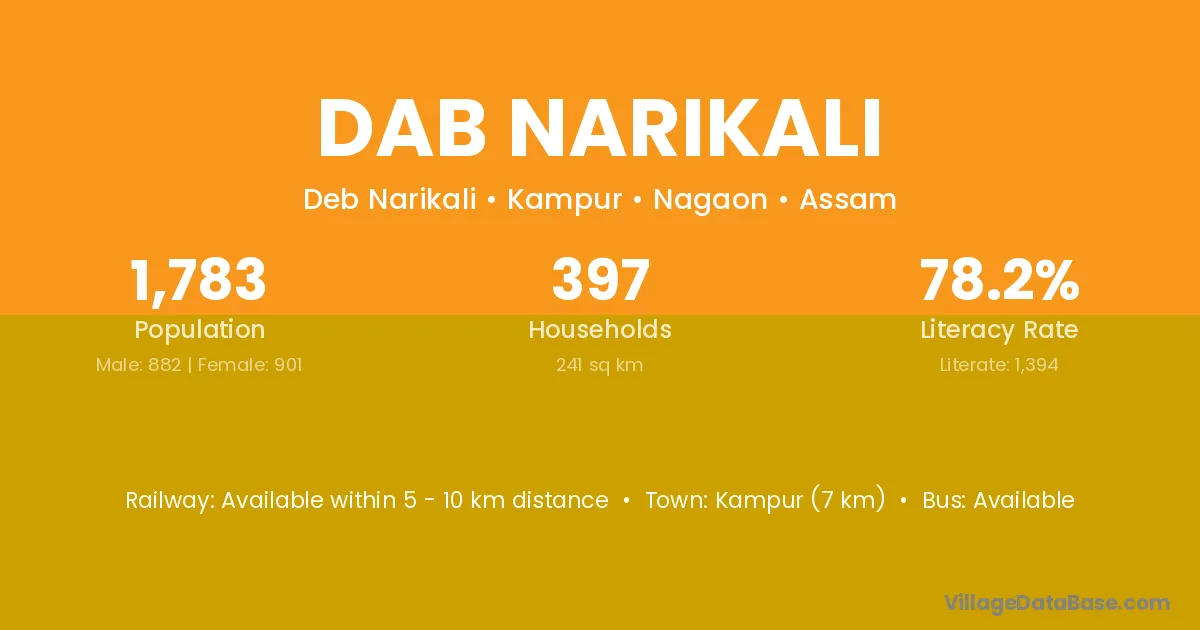 Dab Narikali village is located in the Kampur Subdivision of the Nagaon district in Assam .