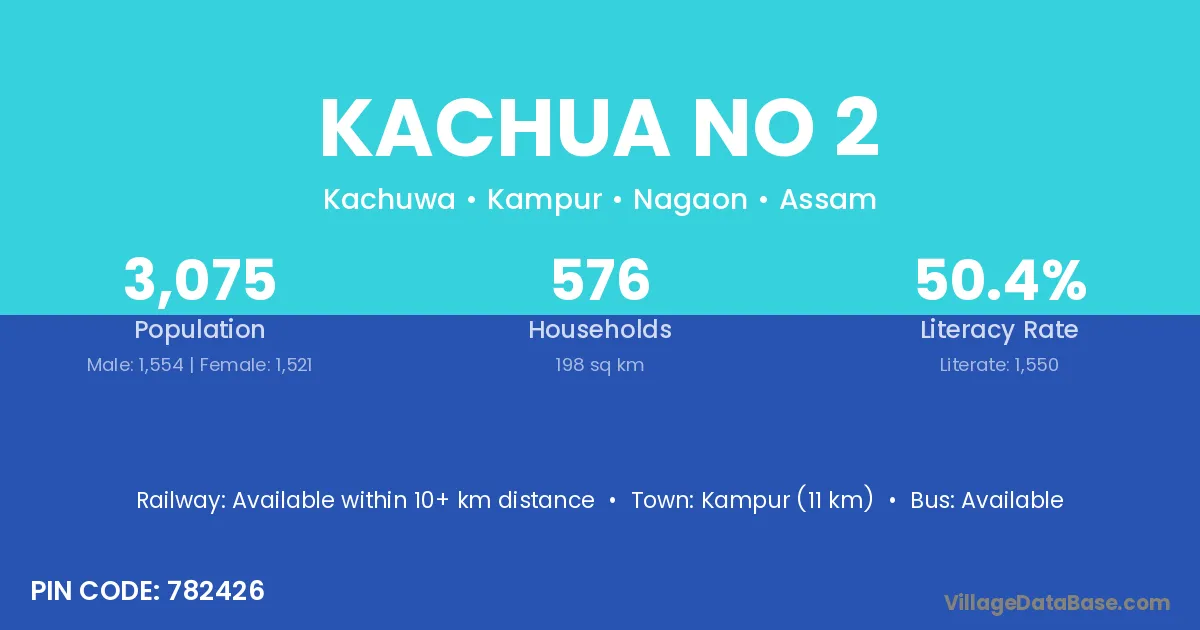 Kampur (11 km) is the nearest town to Kachua No 2 village for major economic activities and is located approximately 11 km away.