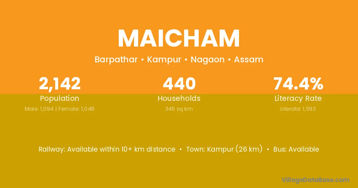 Kampur (26 km) is the nearest town to Maicham village for major economic activities and is located approximately 26 km away.