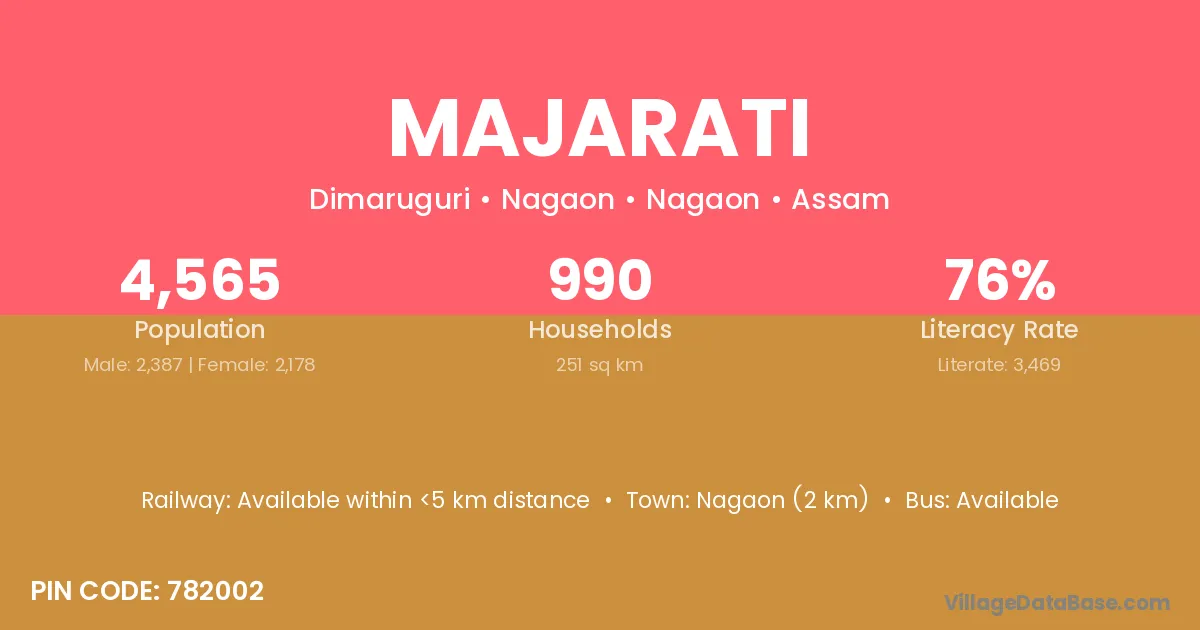 Kampur (2 km) is the nearest town to Majarati village for major economic activities and is located approximately 2 km away.