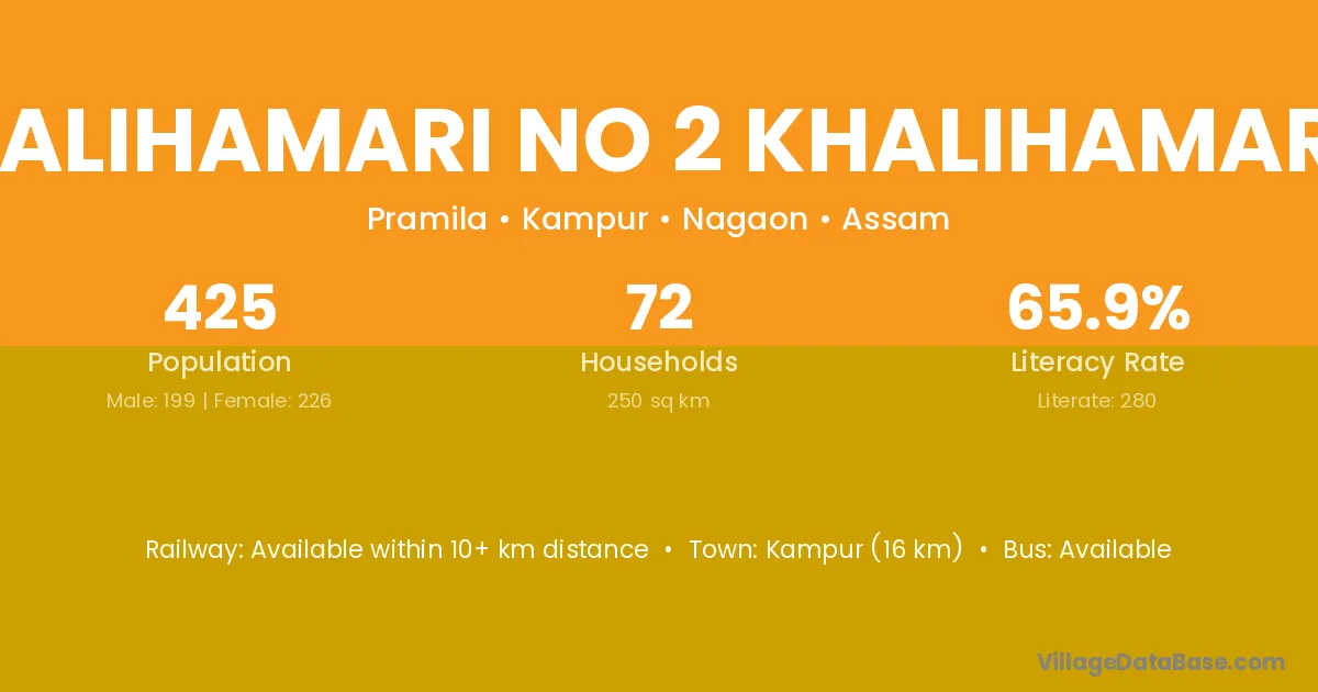 Phalihamari No 2 Khalihamari 2 village has a total population of 425 people, of which 199 are males and 226 are females.