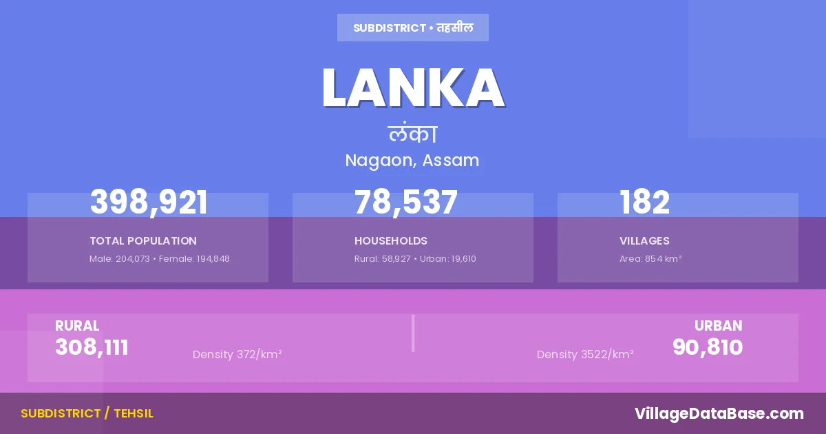 Lanka is a town and Subdivision in the Nagaon district of the Assam. In India, a Subdivision is a subdivision of a district responsible for the administration and revenue collection of a specific area within the district. Subdivisions play a crucial role in the local governance structure, contributing significantly to the development and administration of their communities.