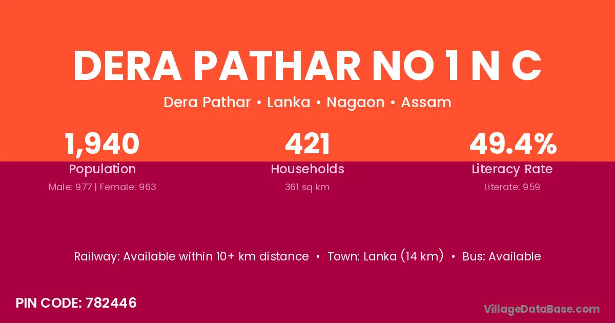 Dera Pathar No 1 N C village has a total population of 1,940 people, of which 977 are males and 963 are females.