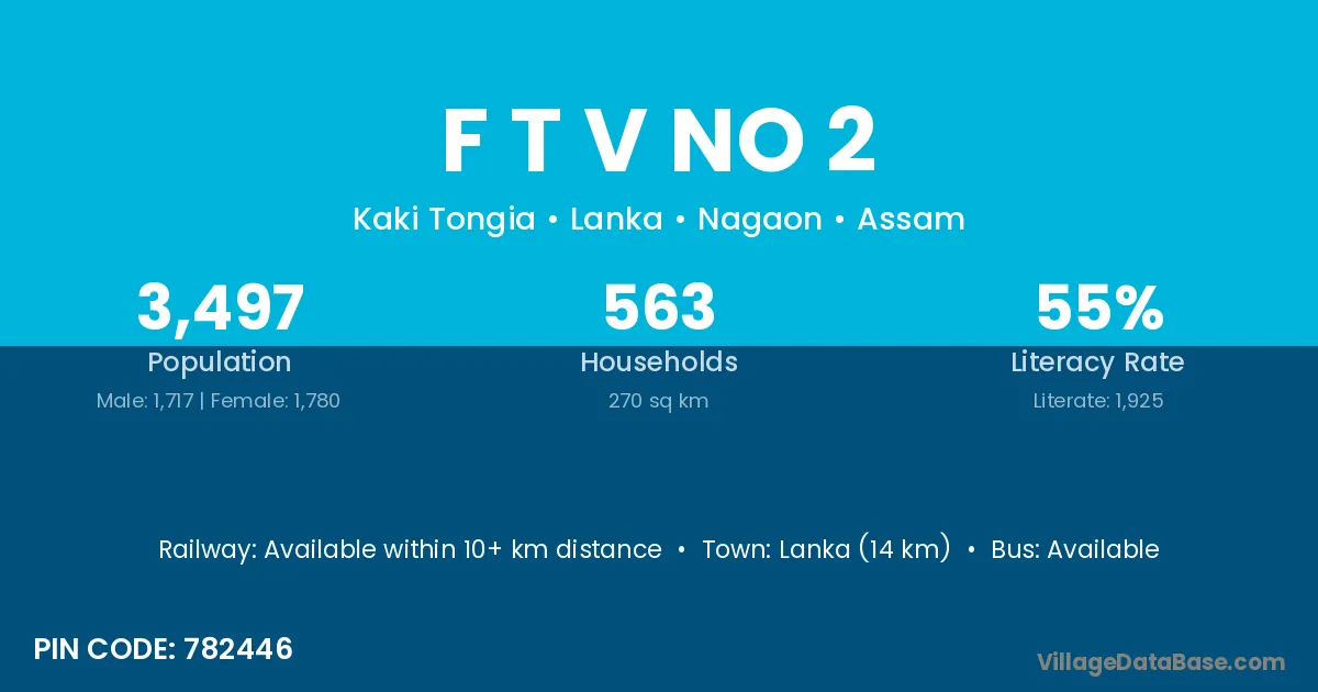 Lanka (14 km) is the nearest town to F T V No 2 village for major economic activities and is located approximately 14 km away.