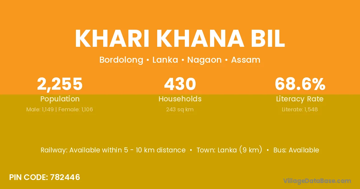 Lanka (9 km) is the nearest town to Khari Khana Bil village for major economic activities and is located approximately 9 km away.