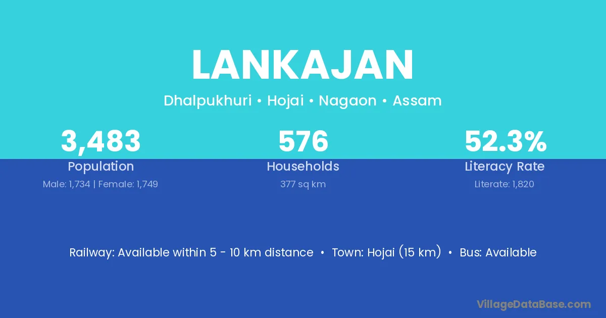 Lanka. (9 km) is the nearest town to Lankajan village for major economic activities and is located approximately 9 km away.