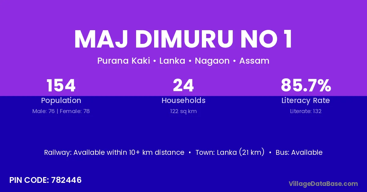Lanka (21 km) is the nearest town to Maj Dimuru No 1 village for major economic activities and is located approximately 21 km away.