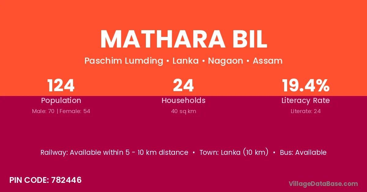 Lanka (10 km) is the nearest town to Mathara Bil village for major economic activities and is located approximately 10 km away.
