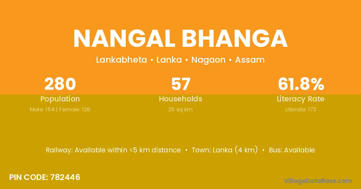 Lanka (4 km) is the nearest town to Nangal Bhanga village for major economic activities and is located approximately 4 km away.