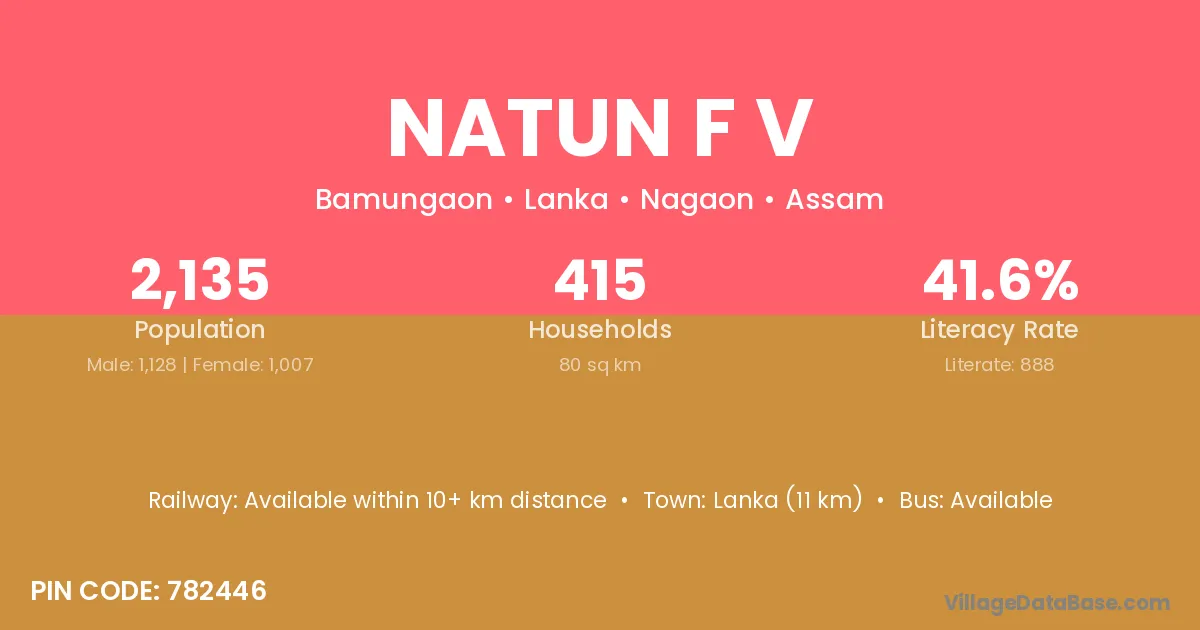 Lanka (11 km) is the nearest town to Natun F V village for major economic activities and is located approximately 11 km away.