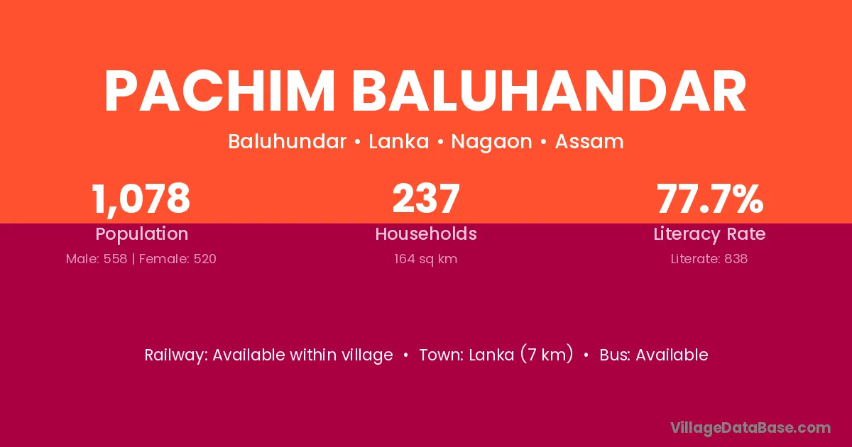 Lanka (7 km) is the nearest town to Pachim Baluhandar village for major economic activities and is located approximately 7 km away.