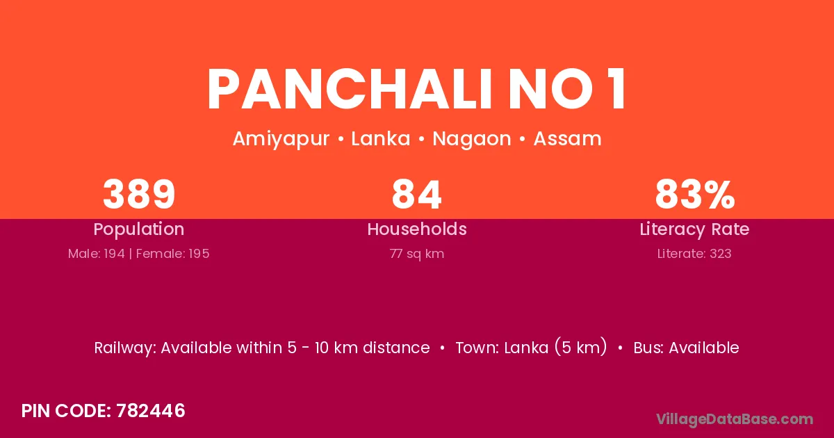 Panchali No 1 village has a total population of 389 people, of which 194 are males and 195 are females.