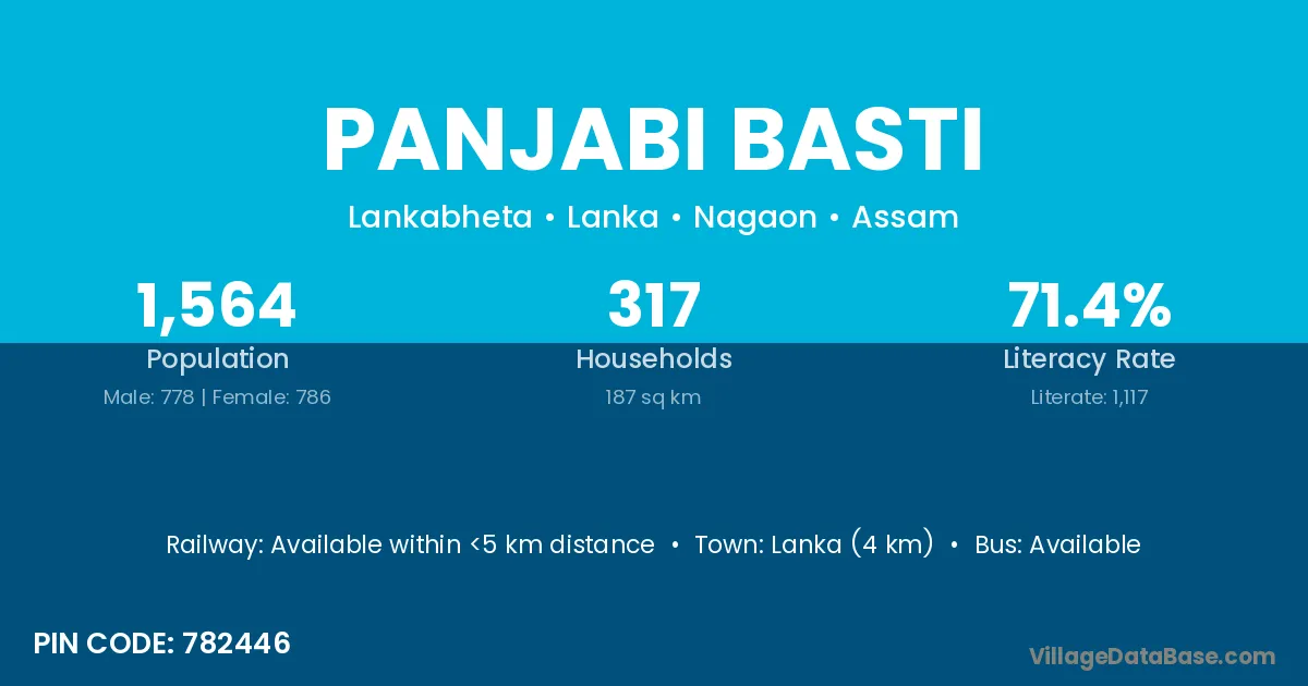 Lanka (4 km) is the nearest town to Panjabi Basti village for major economic activities and is located approximately 4 km away.