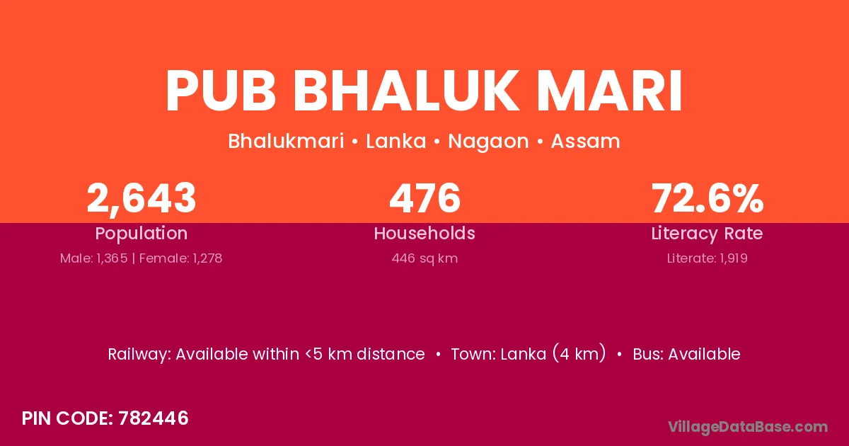 Lanka (4 km) is the nearest town to Pub Bhaluk Mari village for major economic activities and is located approximately 4 km away.