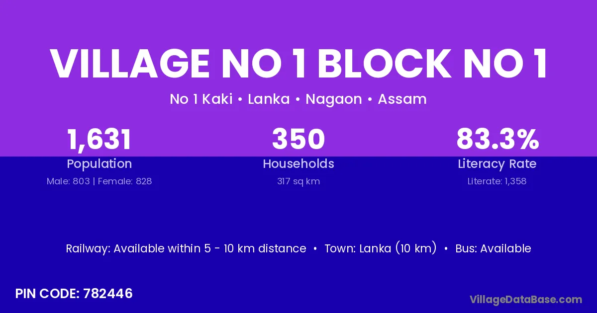 Village No 1 Block No 1 village has a total population of 1,631 people, of which 803 are males and 828 are females.