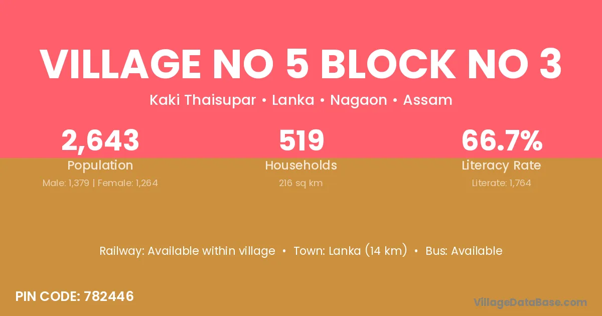 Village No 5 Block No 3 village is located in the Lanka Subdivision of the Nagaon district in Assam .