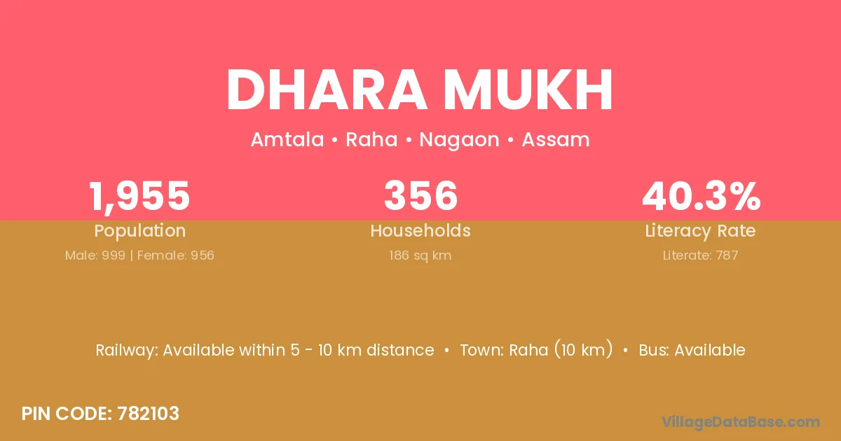 Raha (10 km) is the nearest town to Dhara Mukh village for major economic activities and is located approximately 10 km away.