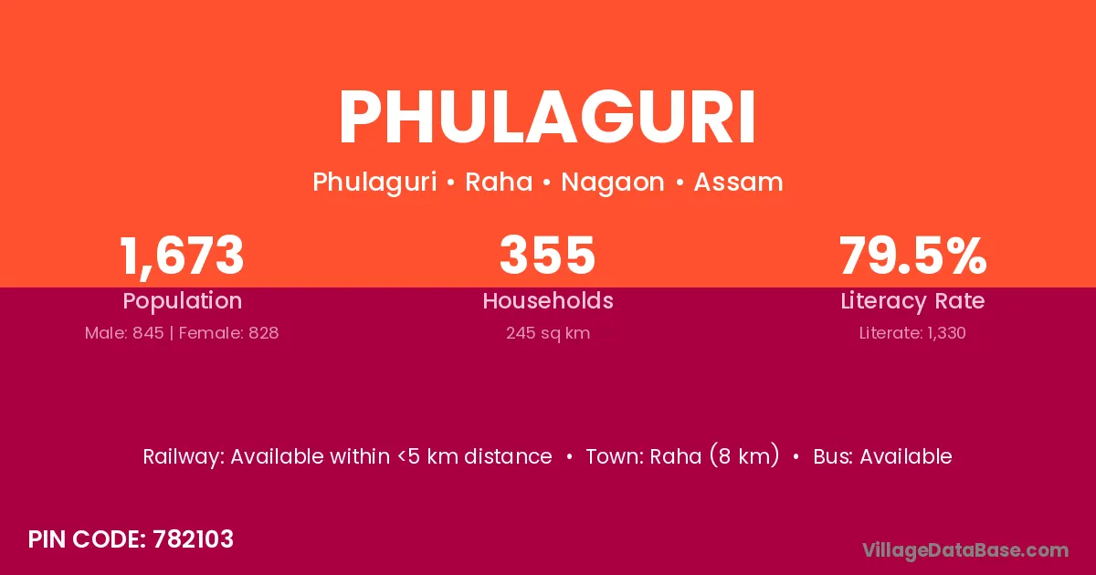 Raha (8 km) is the nearest town to Phulaguri village for major economic activities and is located approximately 8 km away.