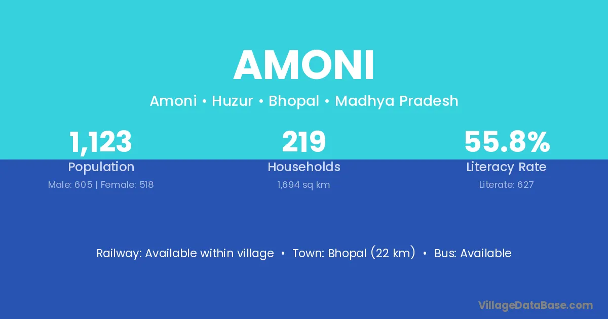 Amoni village has a total population of 1,254 people, of which 690 are males and 564 are females.
