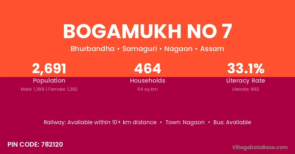 Bogamukh No 7 village has a total population of 2,691 people, of which 1,399 are males and 1,292 are females.