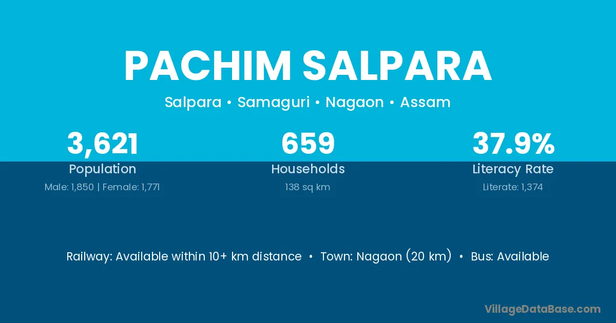 Nagaon (20 km) is the nearest town to Pachim Salpara village for major economic activities and is located approximately 20 km away.