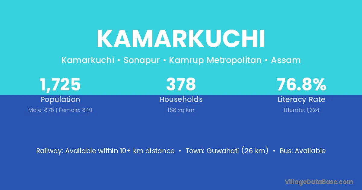 Nalbari (15 km) is the nearest town to Kamarkuchi village for major economic activities and is located approximately 15 km away.