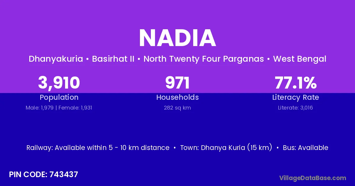 Nalbari (30 km) is the nearest town to Nadia village for major economic activities and is located approximately 30 km away.
