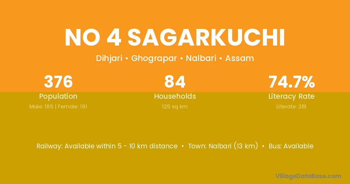 No 4 Sagarkuchi village has a total population of 376 people, of which 185 are males and 191 are females.