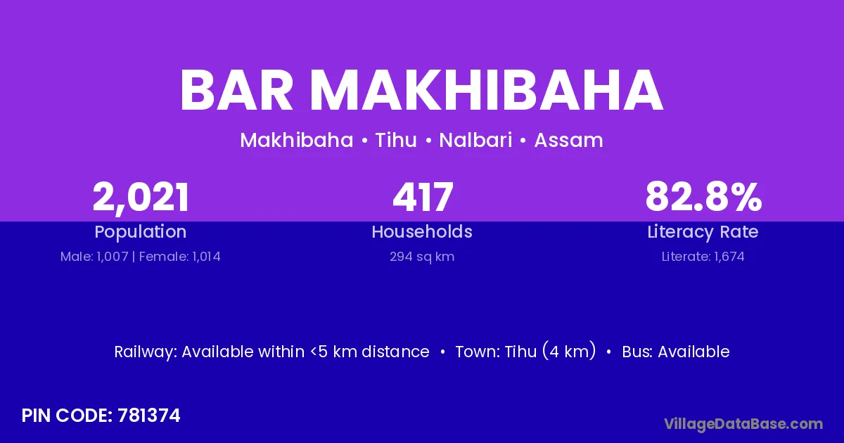 Tihu (4 km) is the nearest town to Bar Makhibaha village for major economic activities and is located approximately 4 km away.