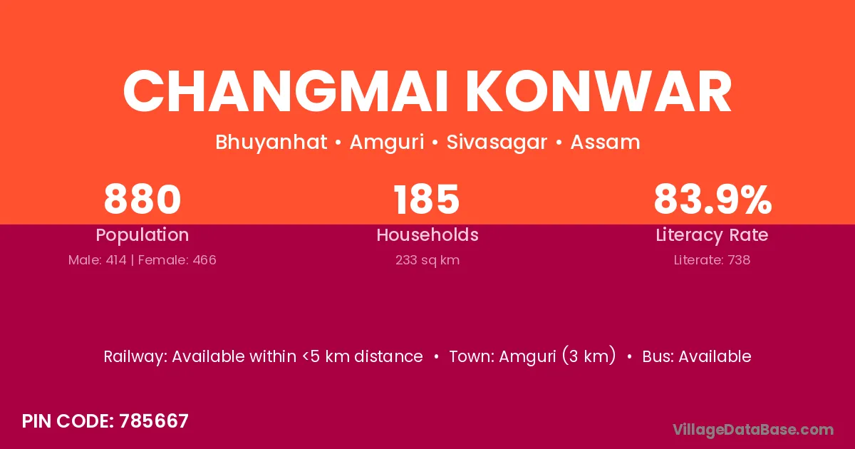 Amguri (3 km) is the nearest town to Changmai Konwar village for major economic activities and is located approximately 3 km away.