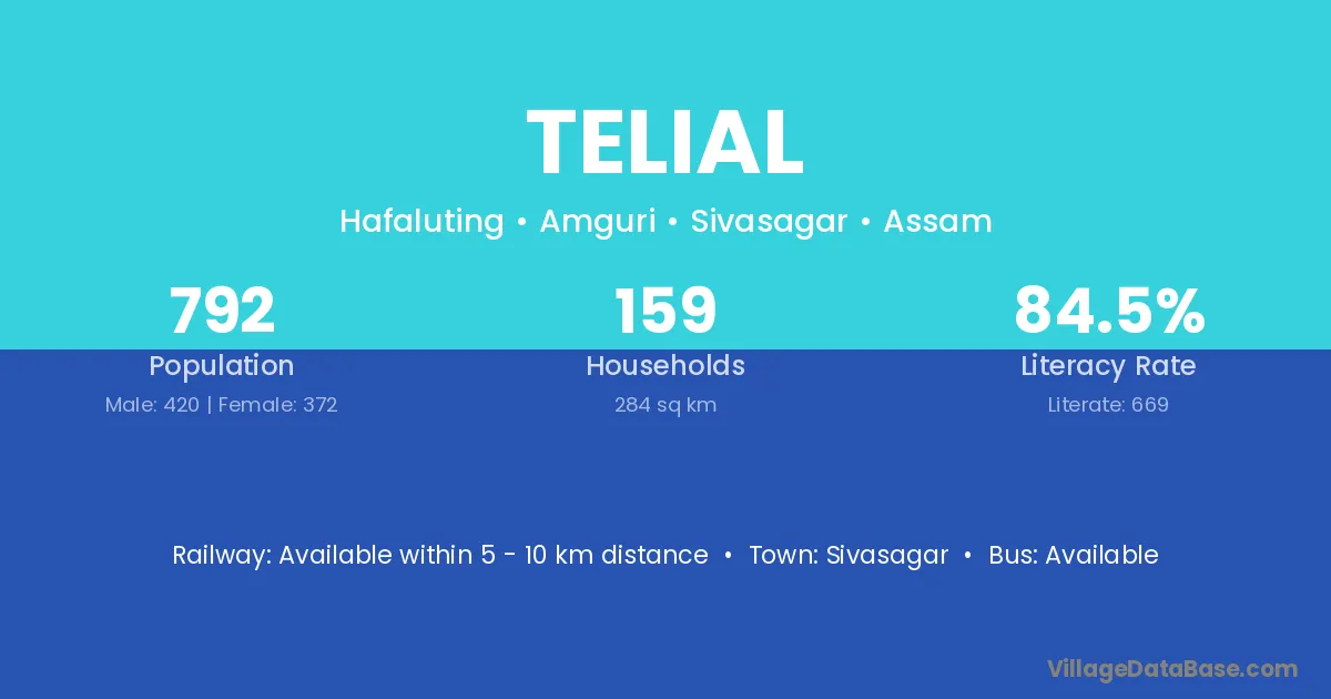 Sivasagar is the nearest town to Telial village for major economic activities