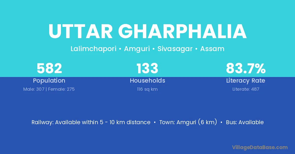 Amguri (6 km) is the nearest town to Uttar Gharphalia village for major economic activities and is located approximately 6 km away.