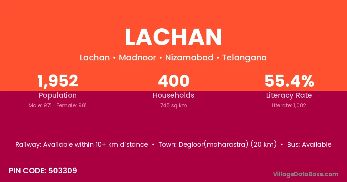 Lachan village has a total population of 803 people, of which 404 are males and 399 are females.