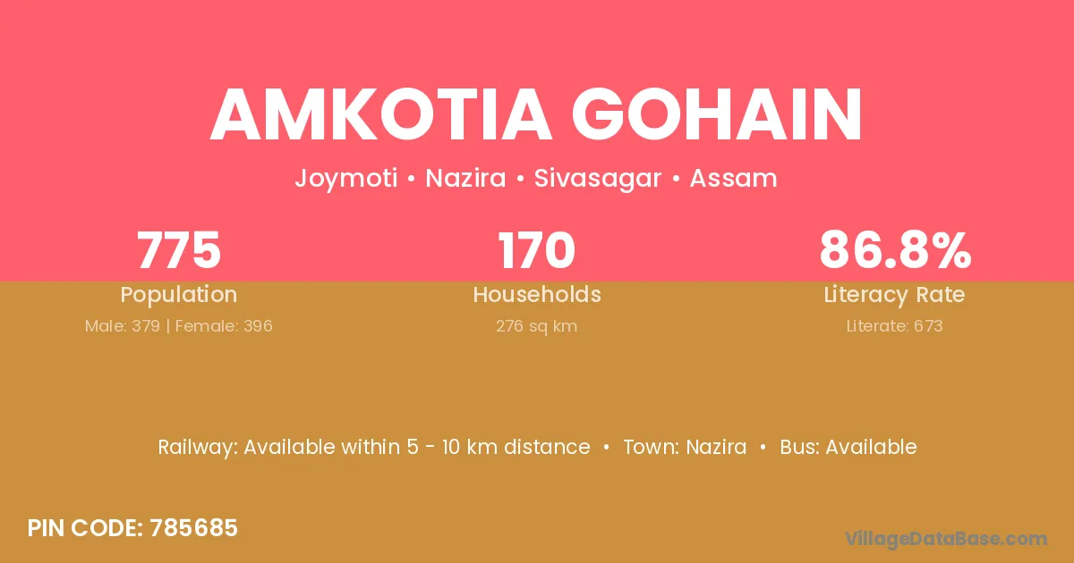 According to Census 2011 information, the village code of Amkotia Gohain village is 785685.
