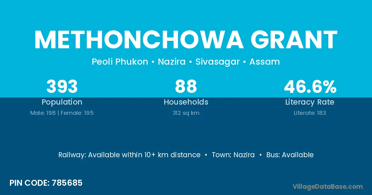 Methonchowa Grant village has a total population of 393 people, of which 198 are males and 195 are females.