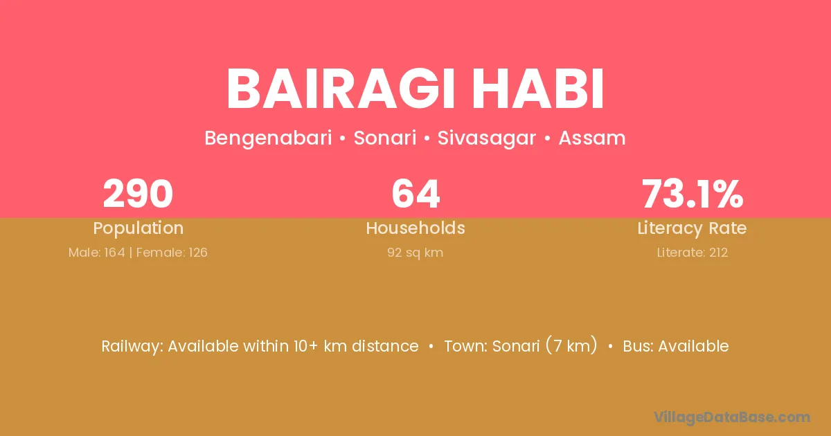 Sonari (7 km) is the nearest town to Bairagi Habi village for major economic activities and is located approximately 7 km away.