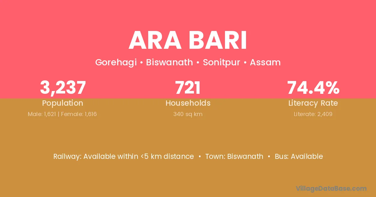Biswanath is the nearest town to Ara Bari village for major economic activities