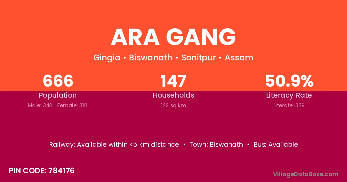 According to Census 2011 information, the village code of Ara Gang village is 784176.