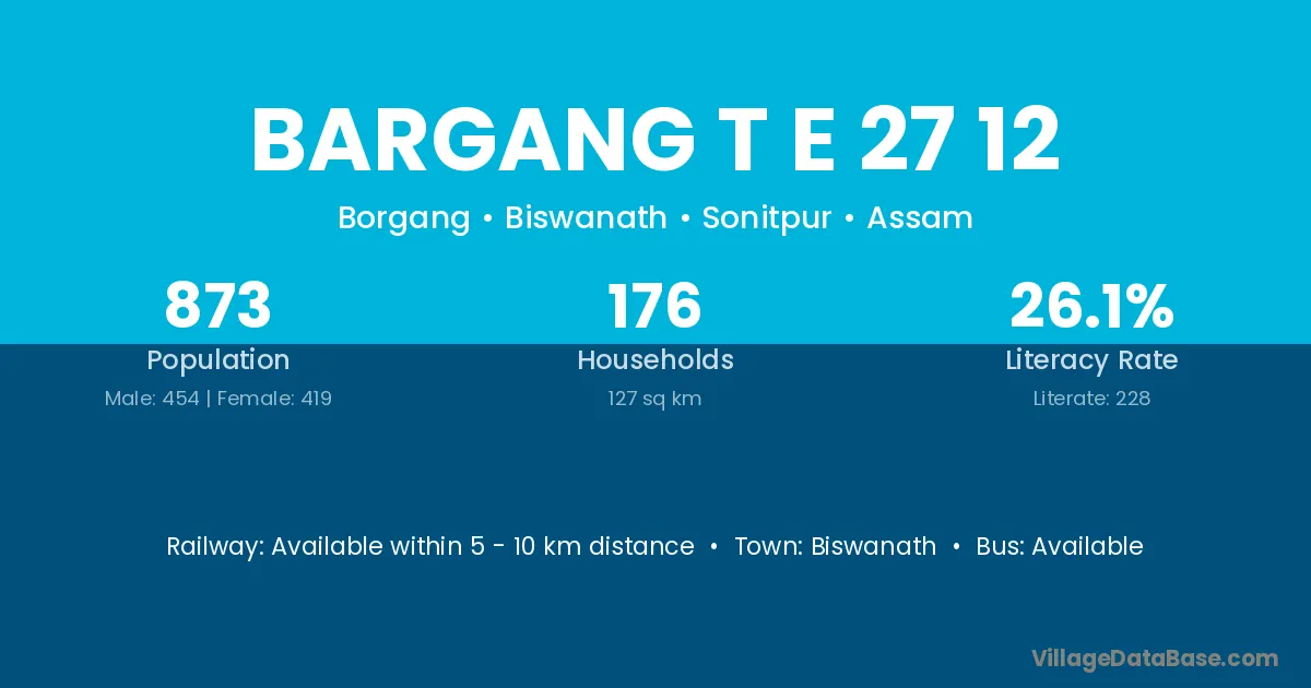 Biswanath is the nearest town to Bargang T E 27 12 village for major economic activities