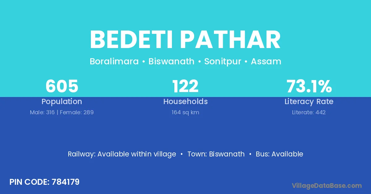 Biswanath is the nearest town to Bedeti Pathar village for major economic activities