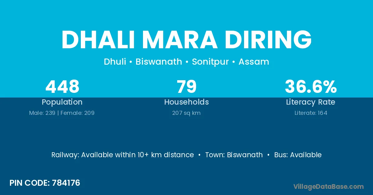 Biswanath is the nearest town to Dhali Mara Diring village for major economic activities
